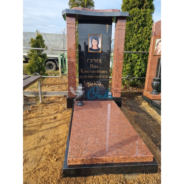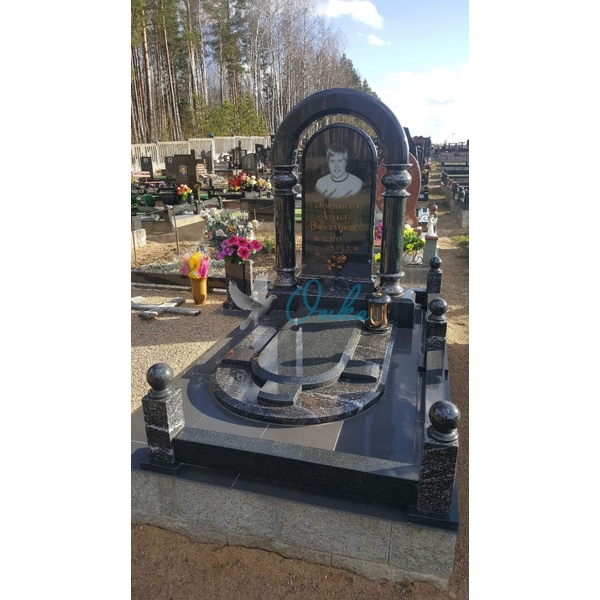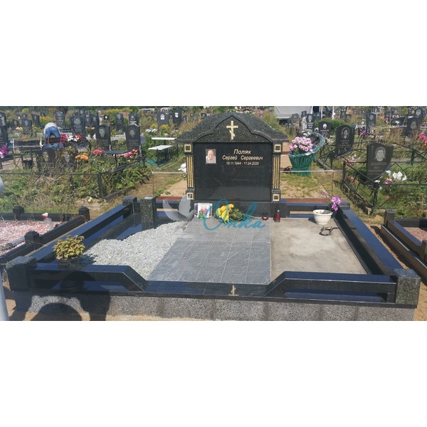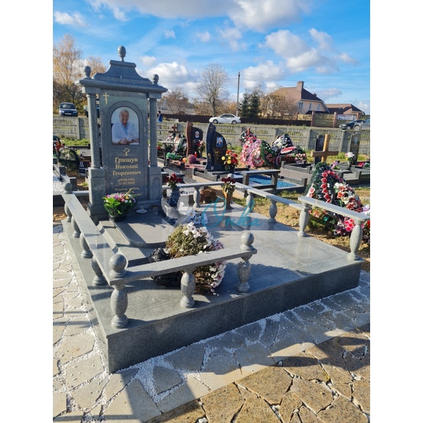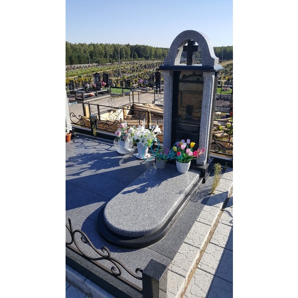 В стоимость входит: Две стелы, тумба, цветочница, три надгробные плиты, вставка под медальон/портрет, ваза