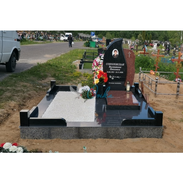 В стоимость входит: Две стелы, крест, тумба, две цветочницы, две полунадгробные плиты