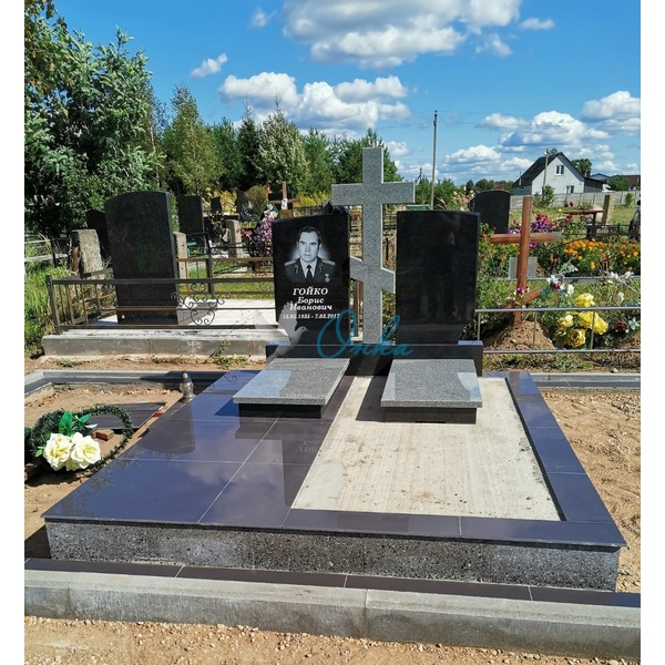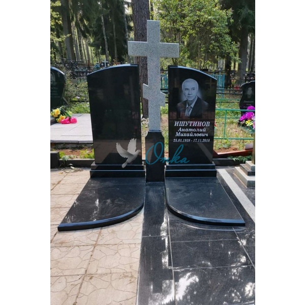 В стоимость входит Две стелы, крест, тумба, две цветочницы, две полунадгробные плиты