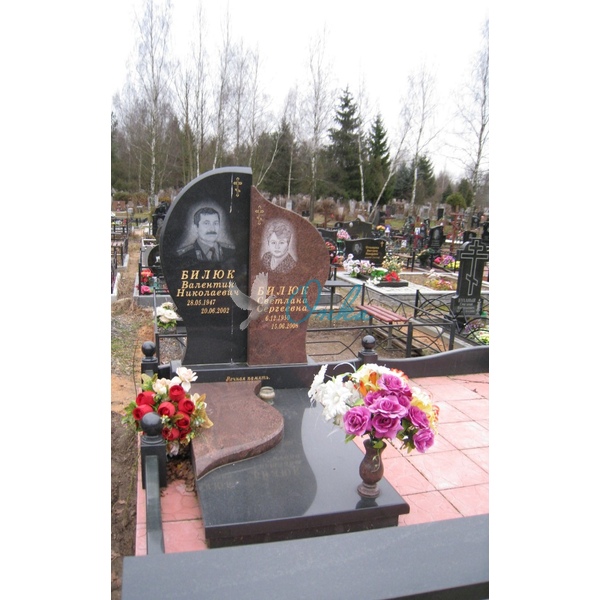 В стоимость входит: Две стелы, тумба, цветочница, полунадгробная плита, рамка под медальон