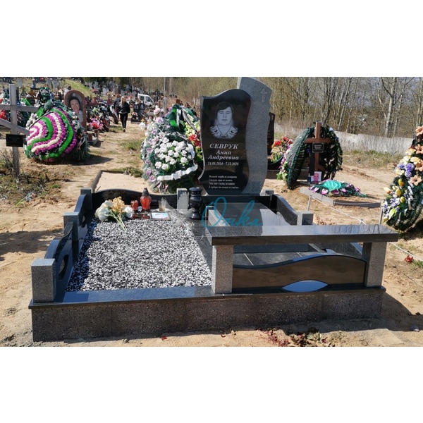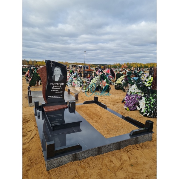 В стоимость входит: Две стелы, тумба, цветочница, три надгробные плиты, вставка под медальон/портрет, ваза
