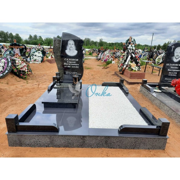 В стоимость входит: Две стелы, крест, тумба, две цветочницы, две полунадгробные плиты