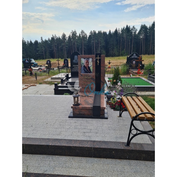 В стоимость входит: Стела, тумба, две колонны, арка, крест, две подложки, цветочница, надгробная плита