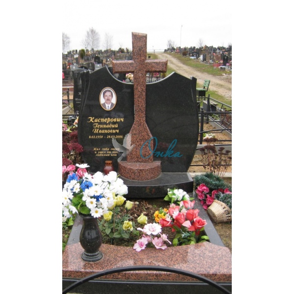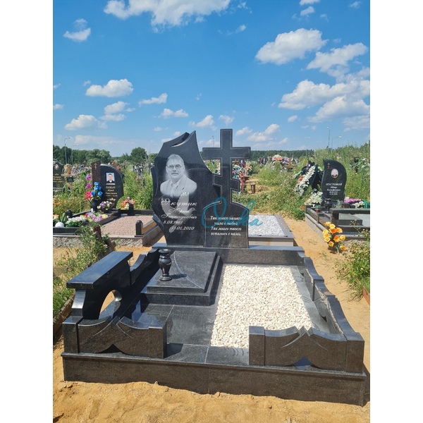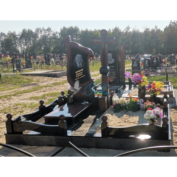 В стоимость входит Две стелы, крест, тумба, две цветочницы, две полунадгробные плиты