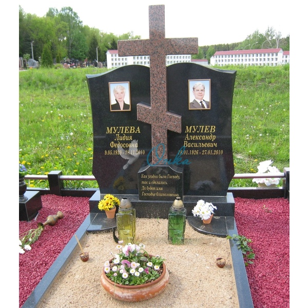 В стоимость входит Две стелы, крест, тумба, две цветочницы, две полунадгробные плиты